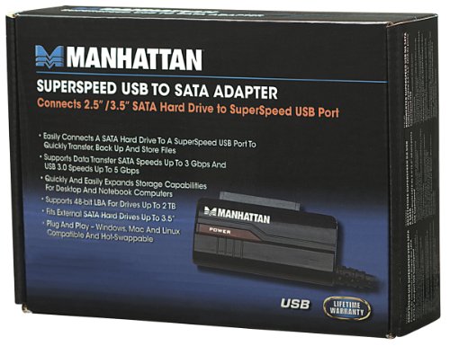 MANHATTAN SuperSpeed USB - SATA Adapter Verbindet 2,5 Zoll oder 3,5 Zoll SATA-Festplatten mit einem USB 3.0 Port fuer HDDs bis 2 TB Spezifikation