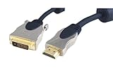 'Mit diesem Home Cinema Anschlusskabel können sie digitale Signale ohne große Verluste übertragen. Das Kabel ist extra für den Einsatz im Home Cinema Bereich ausgelegt und überzeugt nicht nur durch die 24-Karat vergoldeten Kontakte, sondern auch durch die massiven, mattverchromten Vollmetallstecker und durch das mehrfach geschirmte Kabel. Technische Daten: - HDMI Stecker auf DVI D-Stecker (24+1) - Ferrits - High Quality
