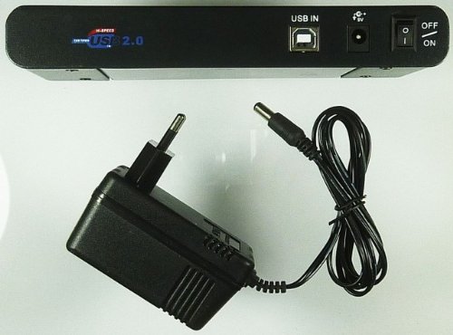 Abmessungen: ca. 180x68x25mm. Ausführung und Lieferumfang wie abgebildet: Adapter, Steckernetzteil für deutsche Steckdosen, USB-Kabel, Software-CD.