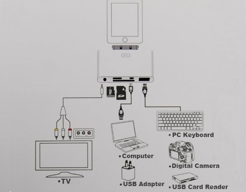 5 in1 Anschluß Set für Apple iPad iPad 2 USB 2, mini USB, SD und Micro SD Karten Slot inkl. AV Kabel Spezifikation