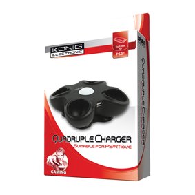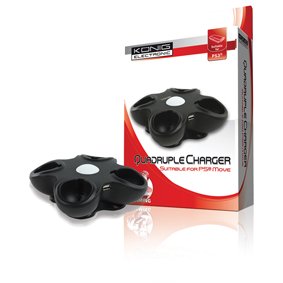 KÖNIG VIERFACH-LADESTATIONMit dieser Ladestation laden Sie zwei Playstation® Move Motion Controller und zwei Navigation Controller gleichzeitig. Das Ladegerät ist außerdem mit zwei zusätzlichen USB-Anschlüssen ausgestattet, um andere USB-Geräte und/oder Gamepads zu laden.